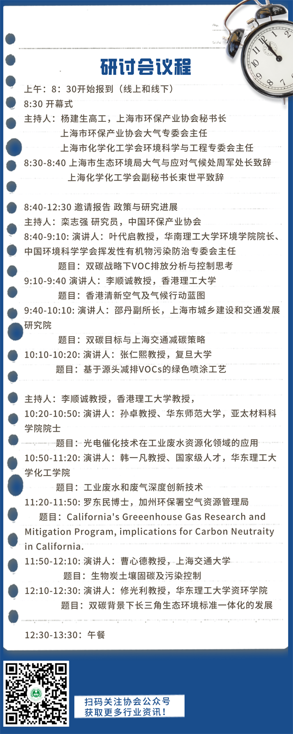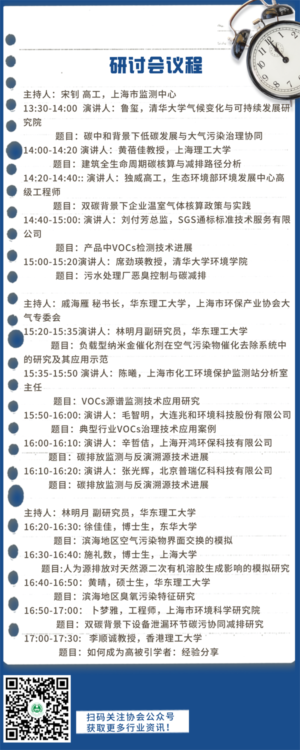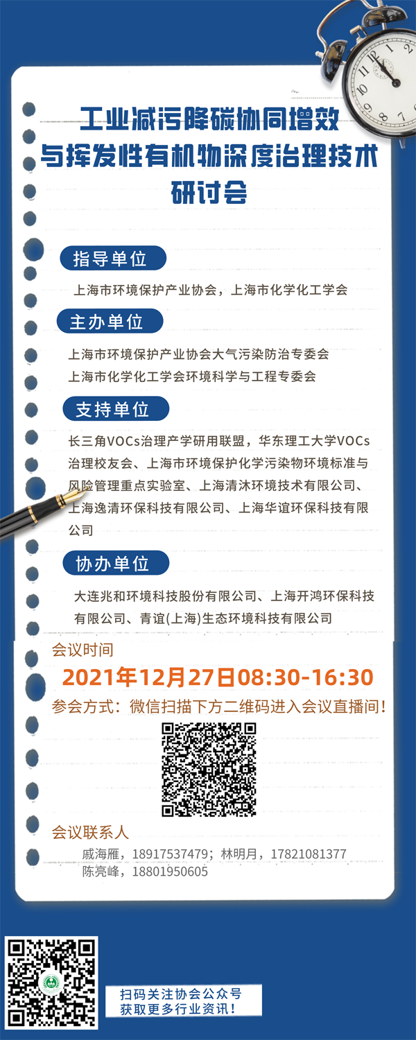 支持单位:长三角VOCs治理产学研用联盟,华东理工大学VOCs治理校友会、上海市环境保护化学污染物环境标准与风险管理重点实验室、上海清沐环境技术有限公司、上海逸清环保科技有限公司、上海华谊环保科技有限公司