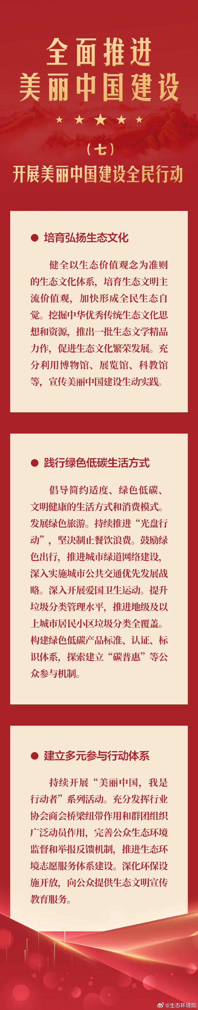 建设美丽中国是全面建设社会主义现代化国家的重要目标,是实现中华民族伟大复兴中国梦的重要内容。1月11日,《中共中央 国务院关于全面推进美丽中国建设的意见》发布。意见分为10章共33条,提出未来5年和到2035年美丽中国建设的主要目标、重大任务和重大改革措施,是指导全面推进美丽中国建设的纲领性文件。