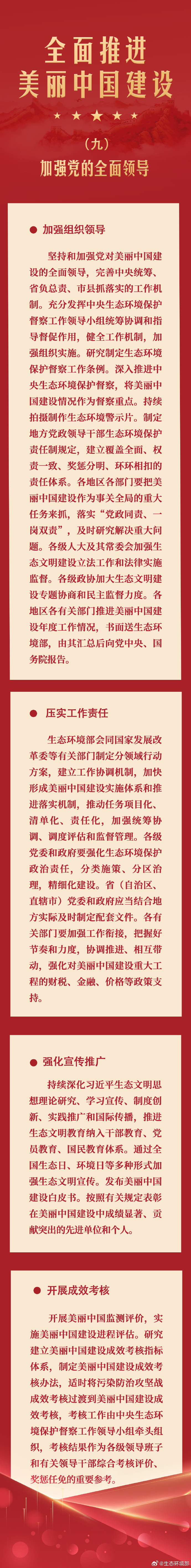 建设美丽中国是全面建设社会主义现代化国家的重要目标,是实现中华民族伟大复兴中国梦的重要内容。1月11日,《中共中央 国务院关于全面推进美丽中国建设的意见》发布。意见分为10章共33条,提出未来5年和到2035年美丽中国建设的主要目标、重大任务和重大改革措施,是指导全面推进美丽中国建设的纲领性文件。
