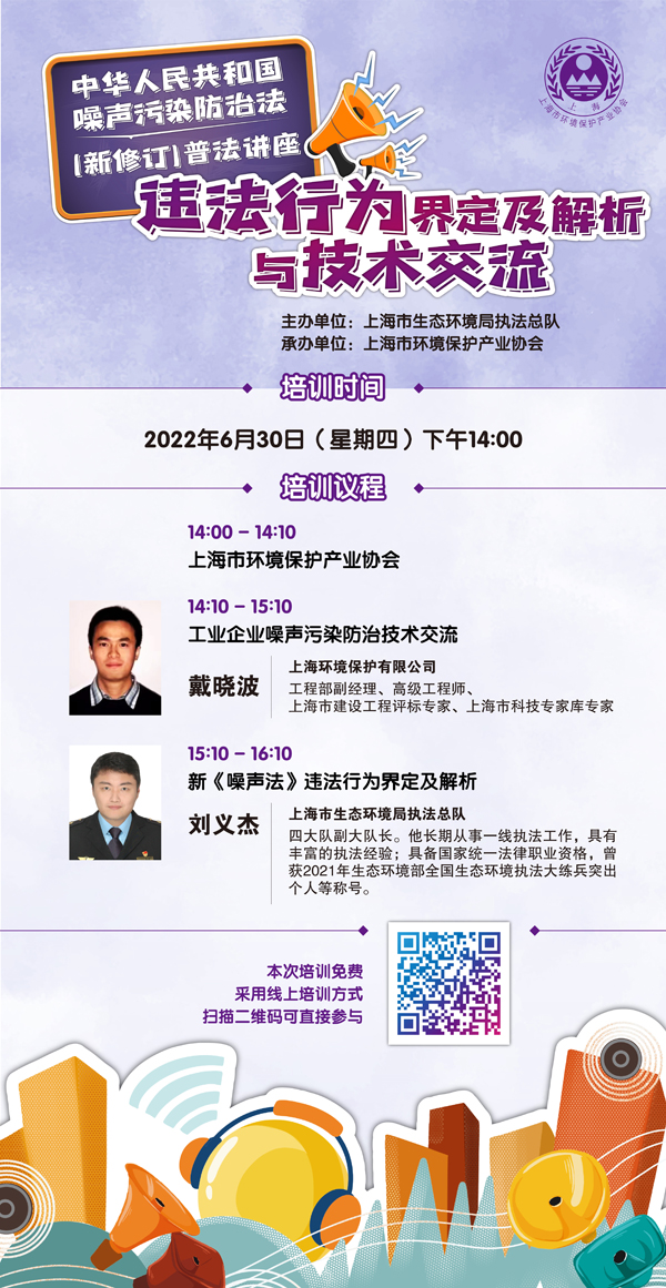 为帮助企业深入了解噪声污染防治技术,明确新《噪声法》违法行为界定,由上海市生态环境局执法总队主办、多多28承办的上海市生态环境执法普法培训(2022年第五期)即将开班。