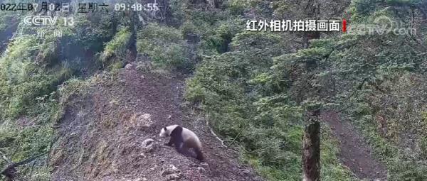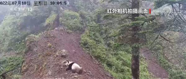 这段画面拍摄于7月2日上午9时48分,一只大熊猫顺着山坡向上爬,在一棵大树下留下标记后,趴在地上休息,悠闲自得。大约8分钟后起身离开。一个小时后,这只大熊猫又出现在镜头里,顺着山坡向下走,边走边观察,逗留数分钟后才离开。时隔9天,同一台相机再次拍到大熊猫。7月10日上午10时04分,一只大熊猫大摇大摆地走进画面,同样趴在地上休息,工作人员操作实时监控,对大熊猫展开进一步观察。大熊猫国家公园崇州片区面积280平方公里,据第四次大熊猫调查统计,片区内有大熊猫26只。