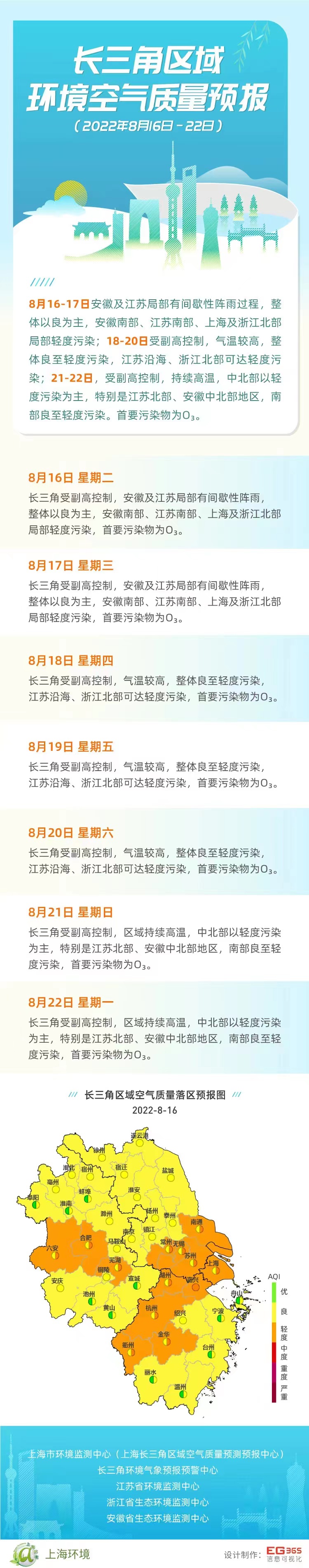 中新网上海8月15日电 (记者 陈静)长三角区域空气质量预测预报结果图15日起正式上线,这意味着, 未来7天三省一市的空气质量情况一目了然。