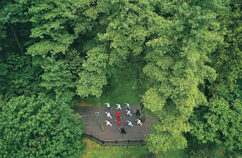 2022年以来,贵州省贵阳市以长坡岭国家级森林公园为试点,建设贵州首个“林长制”主题公园,开展习近平生态文明思想、林长制政策、森林资源保护发展政策等宣传,促进形成全社会爱林、护林、兴林的良好氛围。图为2022年7月13日,市民在长坡岭国家级森林公园里健身(无人机照片)。 新华社记者 杨文斌/摄
