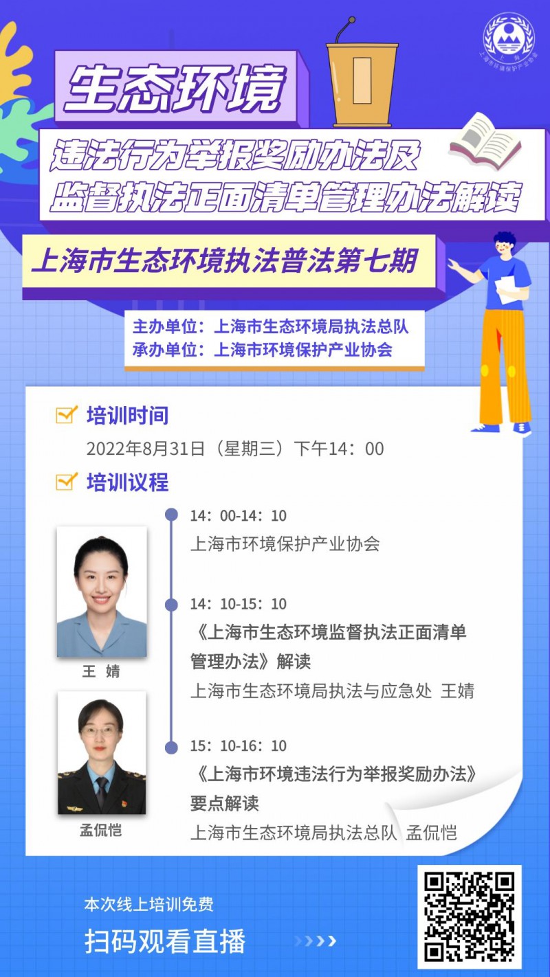 为贯彻落实《上海市生态环境违法行为举报奖励办法》,加大推进我市环境治理体系和治理能力现代化,加强对生态环境违法行为的社会监督,鼓励公众参与,增强企业的守法意识,营造和谐稳定的社会环境。由上海市生态环境局执法总队主办、多多28承办的上海市生态环境执法普法培训(2022年第七期)即将开班。