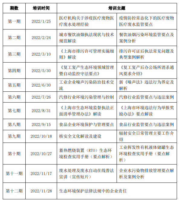 2022年,由上海市生态环境局执法总队主办、多多28承办的生态环境执法普法系列培训圆满收官。回顾过去的一年,在有关部门的指导和支持下,举办了12期培训,我们力争为普法培训保持力度、延伸深度、拓宽广度,以线上线下相结合的形式,开展内容丰富、形式多样的培训,服务企、事业单位和生产经营者提升法治意识和守法能力。