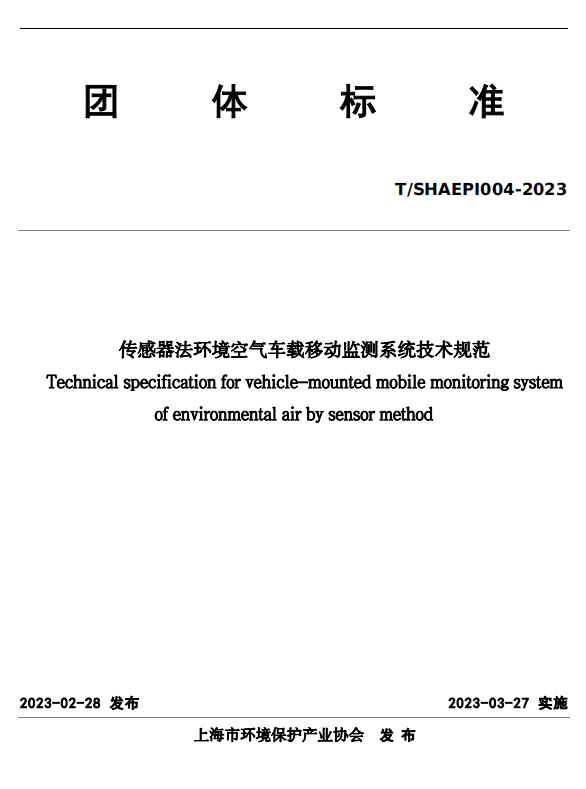 日前,由上海市环境监测中心、上海申欣优达环保科技有限公司、上海交通大学等7家单位共同编制完成的团体标准《传感器法环境空气车载移动监测系统技术规范》(T/SHAEPI004-2023)已发布。