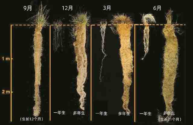 ▲相较于一年生植物,多年生植物根系更发达,有利于长期储碳。(图片来源:《科学》杂志)