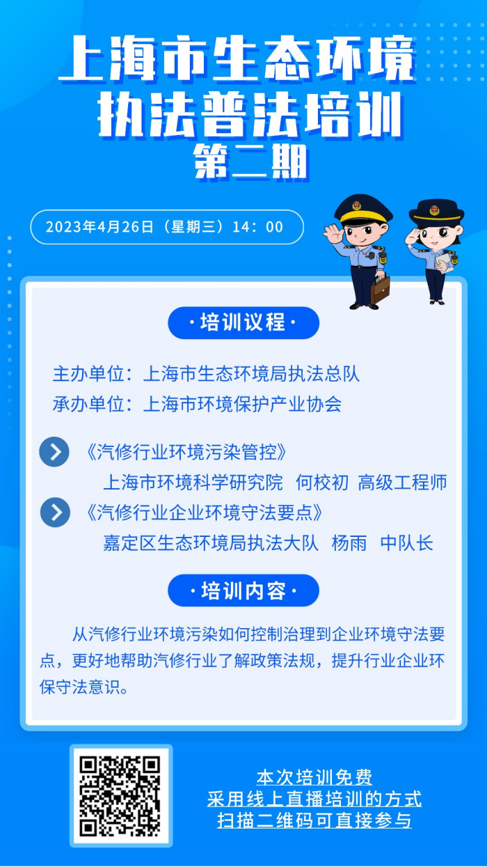 为更好地帮助汽修行业企业了解环保政策法规,加强汽修行业环境污染管控,提升企业守法意识,由上海市生态环境局执法总队主办、多多28承办的上海市生态环境执法普法培训(2023年第二期)即将开班。