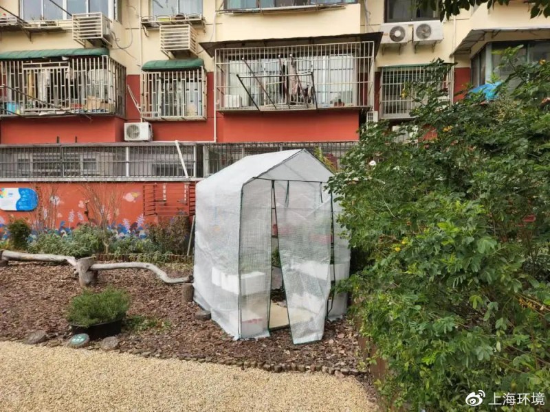 新泾镇金虹苑小区常馨生境花园中居民们在冬天搭建的暖房(2022年12月23日)。