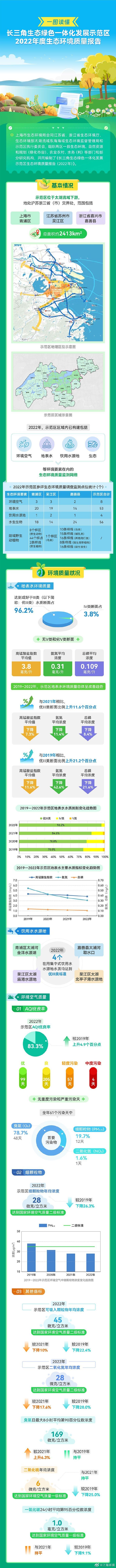 在6月6日召开的长三角区域生态环境保护协作小组第三次工作会议上,江苏、浙江、上海两省一市生态环境厅、生态环境部太湖东海局、示范区执委会共同发布《长三角生态绿色一体化发展示范区生态环境质量报告(2022 年)》。