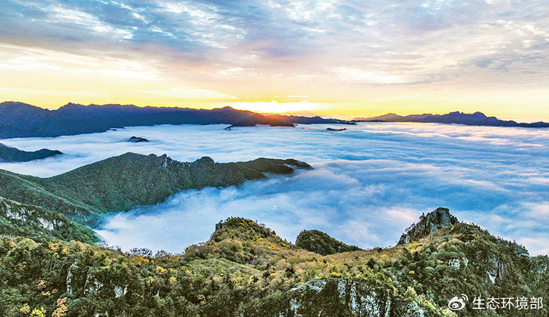 图为2023年10月3日,雨后初晴的陕西秦岭牛背梁国家森林公园出现云海奇观,美不胜收。