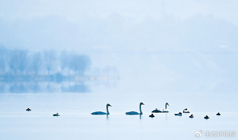 近年来,青海省加大力度保护治理境内黄河流域,为越冬候鸟提供良好栖息地。