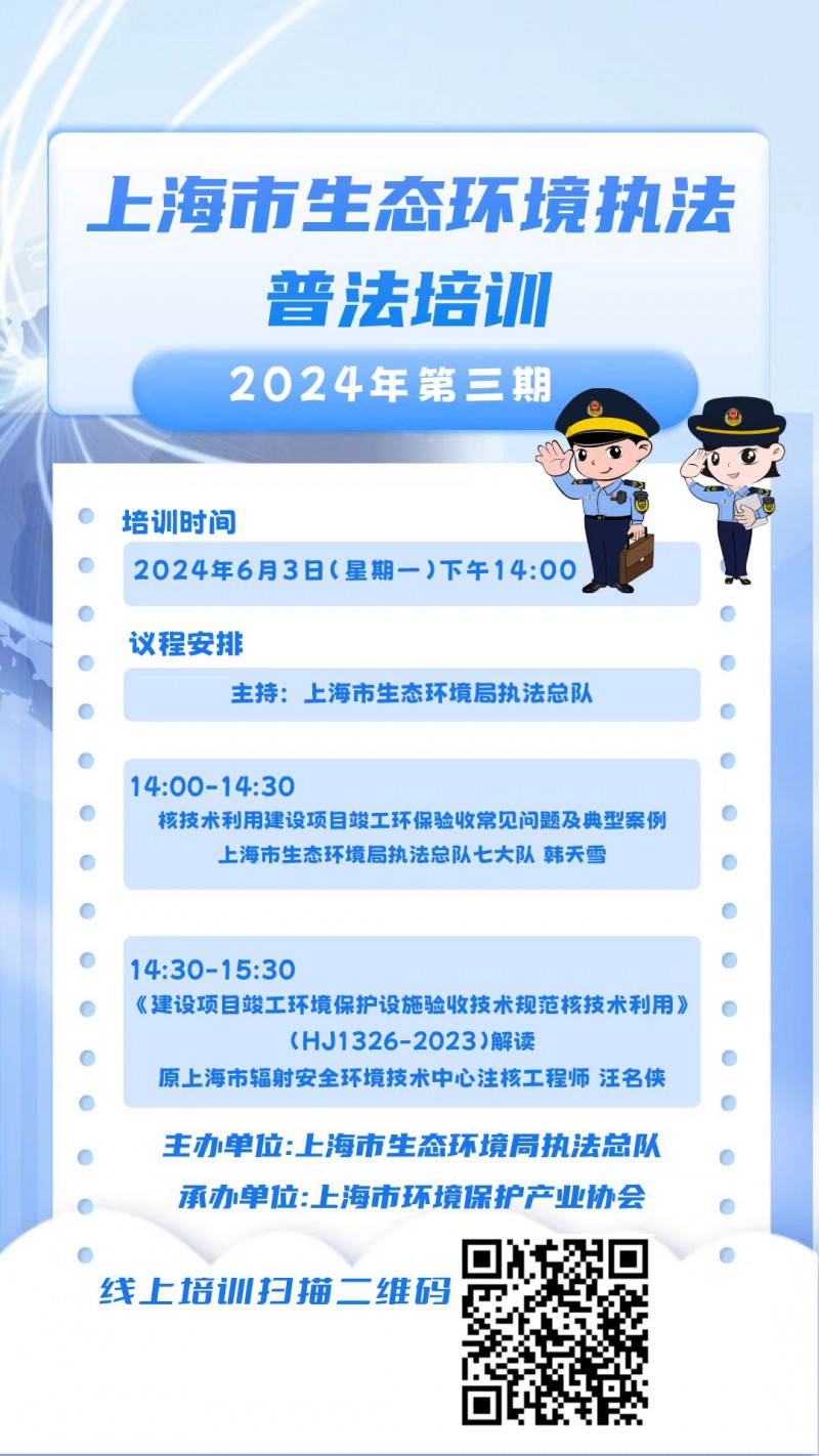 为加强规范核技术利用项目竣工环境保护设施验收工作,预防和控制放射性污染,加强生态环境辐射安全领域标准宣贯,保护生态环境和人员辐射安全,由上海市生态环境局执法总队主办、多多28承办的上海市生态环境执法普法培训(2024年第三期)即将开班。