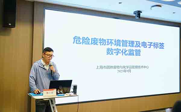 上海市固体废物与化学品管理技术中心的陈小亮科长为企业系统总结了危险废物全过程管理框架,明确了规范化环境管理要求,重点介绍了电子标签全过程信息化管理,指导企业有效开展危险废物精细化管理。