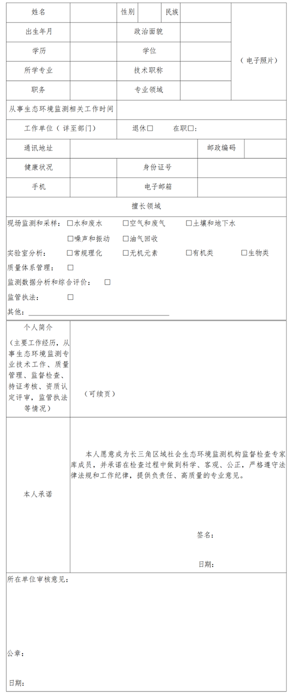 有入库意向的专家,应填写《长三角区域社会生态环境监测机构监督检查专家库入库申请表》(见附件1)。