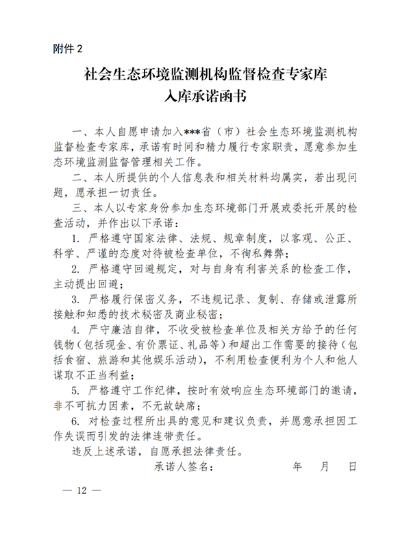2.社会生态环境监测机构监督检查专家库入库承诺函