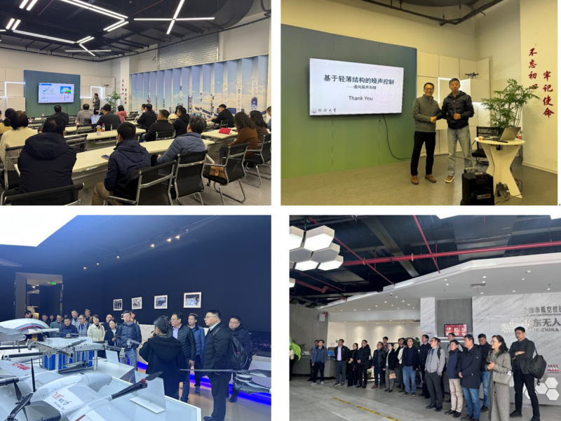 会后,专委会联合上海市环境科学学会环境声学专委会,共同开展了华东无人机基地参观及学术交流活动。邀请同济大学王旭教授做了“基于轻薄结构的噪声控制-通风隔声屏障”的学术讲座,王教授为大家带来了轻薄噪声控制的系列成果与应用展望,从新原理、新效应、新应用、新器件四个维度介绍了基于超构材料的声波控制技术。学术交流后,团队参观了华东无人机基地,华东无人机基地是中国首个以无人机为特色的战略性新兴产业园区,是国内无人机产业的重要集聚区和创新高地。团队成员参观了诸如顺丰、美团、峰飞航空、御风未来等物流及eVTOL企业产品,观摩了物流配送、农业植保、应急救灾等多领域应用场景展示。本次活动使大家既充分学习了环境噪声振动控制领域的科学研究新趋势新成果,又深入了解了蓬勃发展的低空经济发展历程、成果和未来前景,同时也加强了专家、学者、企业家之间的沟通和交流,有助于促进今后的产学研合作。