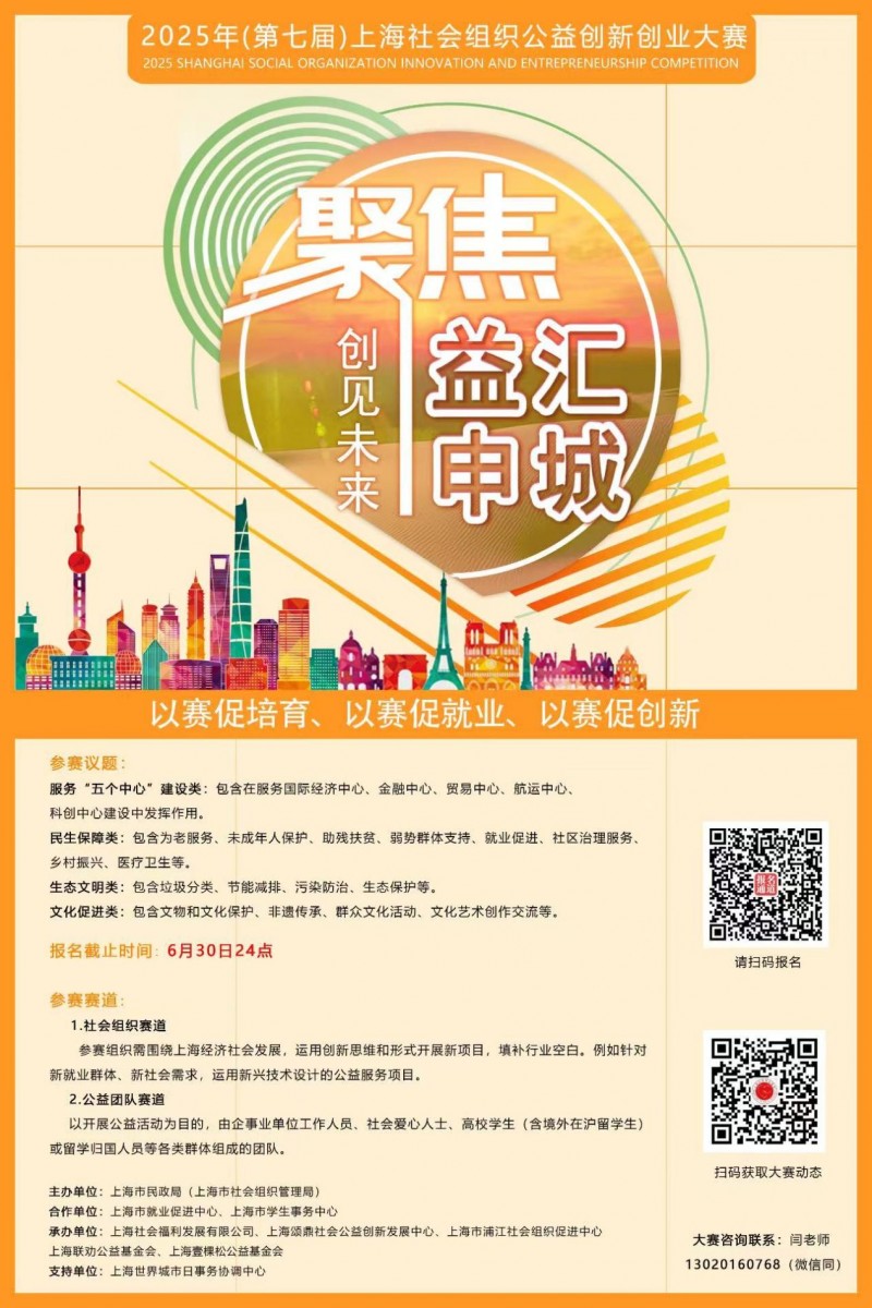 等你来赛│2025年(第七届)上海社会组织公益创新创业大赛报名开启