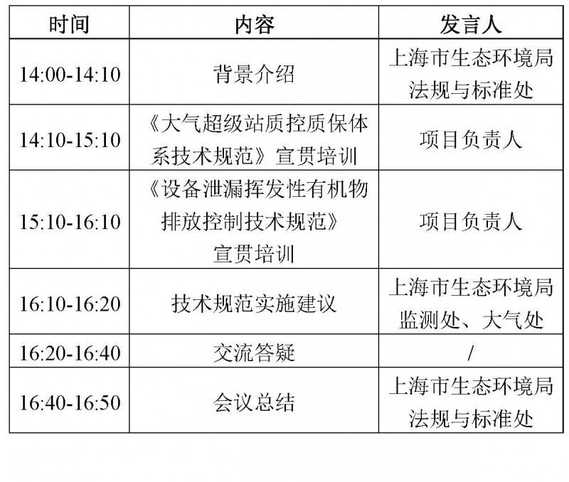 为做好标准宣贯培训工作,进一步推动长三角区域生态环境标准协调统一,上海市、江苏省、浙江省和安徽省生态环境厅(局)兹定于5月28日(星期五)下午2:00,联合组织召开长三角区域首批生态环境统一标准《大气超级站质控质保体系技术规范》《设备泄漏挥发性有机物排放控制技术规范》宣贯培训会。现就会议安排和要求通知如下: