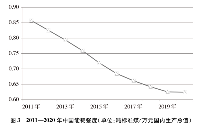 能耗强度显著降低。中国是全球能耗强度降低最快的国家之一,初步核算,2011年至2020年中国能耗强度累计下降28.7%。“十三五”期间,中国以年均2.8%的能源消费量增长支撑了年均5.7%的经济增长,节约能源占同时期全球节能量的一半左右。中国煤电机组供电煤耗持续保持世界先进水平,截至2020年底,中国达到超低排放水平的煤电机组约9.5亿千瓦,节能改造规模超过8亿千瓦,火电厂平均供电煤耗降至305.8克标煤/千瓦时,较2010年下降超过27克标煤/千瓦时。据测算,供电能耗降低使2020年火电行业相比2010年减少二氧化碳排放3.7亿吨。2016年至2020年,中国发布强制性能耗限额标准16项,实现年节能量7700万吨标准煤,相当于减排二氧化碳1.48亿吨;发布强制性产品设备能效标准26项,实现年节电量490亿千瓦时。