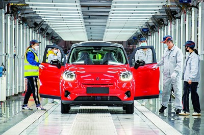 在浙江金华新能源汽车小镇,汽车报交下线正在进行。新华社发