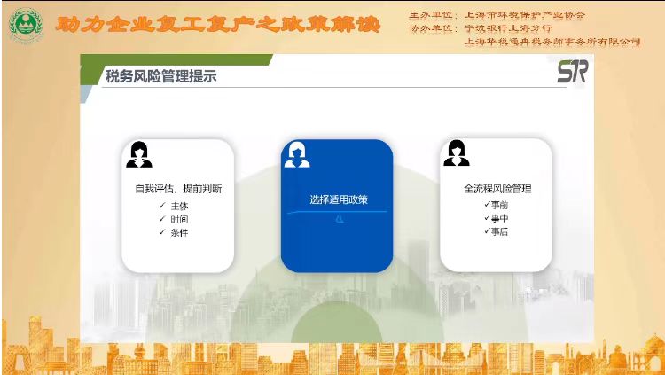目前上海疫情防控工作稳中向好,各行业正有序推进复工复产准备。为抗疫尽一份力量是广大会员单位的共同心声,在听取意见和建议基础上,针对环保企业疫情期间关注的复工复产相关问题,由多多28主办、宁波银行上海分行和上海华税通冉税务师事务所有限公司协办的“助力企业复工复产之政策解读”线上专题讲座于2022年05月23日顺利举行。