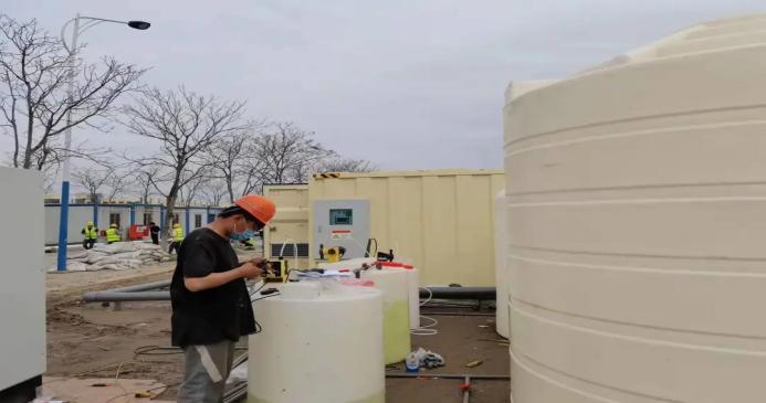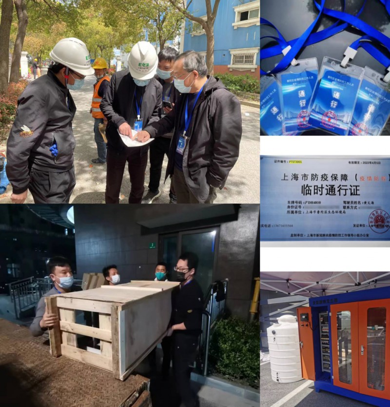 2022年3月27日下午6时,公司首先接到为上海普陀区某隔离点加急建设安装污水处理系统,确保隔离点内污水消杀达标及安全排放的环保项目紧急任务。接受抗疫建设的项目就是一项战斗命令,必须坚决完成。认真快速建设隔离点污水配套设施建设任务和保证污水达标排放这就是我们的责任。接到命令后公司董事长、总经理黄玮立即紧急组织管理及技术人员会议,快速制定初步方案、部署各项任务,在短短十几分钟内完成了各项分工,成立了方案设计组、设备采购组、现场施工安装组。为全力保障进度,所有人员立即行动,连夜踏勘现场,制定设计方案、调运设备和物料、组织施工及技术人员进驻现场作业等奋战至第二天凌晨3时,从接受任务到完成设备安装、调试、检验、验收、驻场人员培训等工作仅用了9个小时,完成了隔离点污水处理设备正常运行投入使用的项目任务。完成任务的各项指标从时间上也创下了公司的先列。